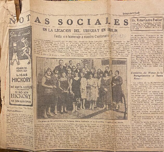 View documentArticle in “Imparcial,”Dated July 18, 1930. On Centennial celebrations in the Uruguayan Legation in Berlin. It includes a photograph.. Location: archive of Mario Gandolfo.