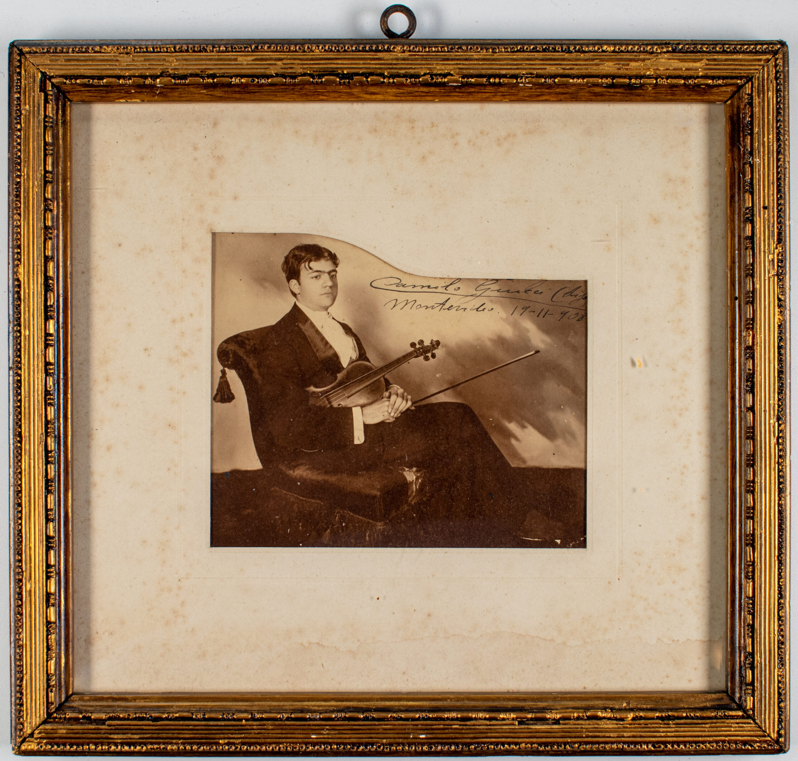 View photographPhotographic portrait of Camilo Giucci (son), with dedication to his father, 1909. Location: Museo Histórico Nacional.