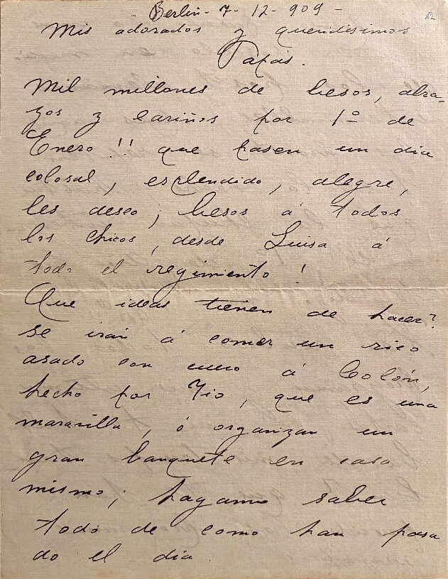 Ver documentoCarta de Camilo Giucci (hijo) a sus padres, 7/12/1909. Saluda a sus padres por fin de año y refiere a sus estudios. Ubicación: Museo Histórico Nacional.
