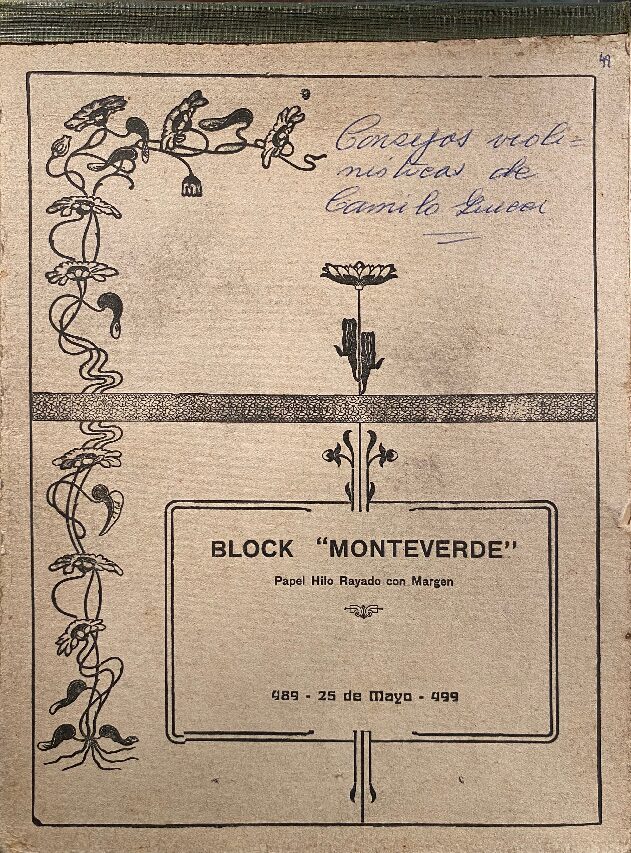 Ver documentoBlock de notas manuscrito de Camilo Giucci (hijo), titulado «Consejos violinísticos de Camilo Giucci». Ubicación: Museo Histórico Nacional.