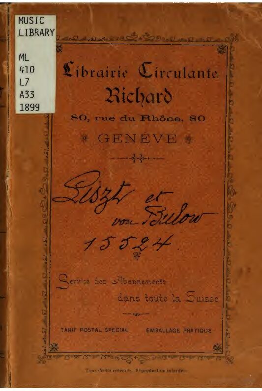 Ver documentoCorrespondencia entre Hans von Bülow y Franz Liszt, acerca del aprendizaje de Camilo Giucci. Ubicación: «Correspondance entre Franz Liszt et Hans von Bülow», Librarie Fischbacher, París, 1899.