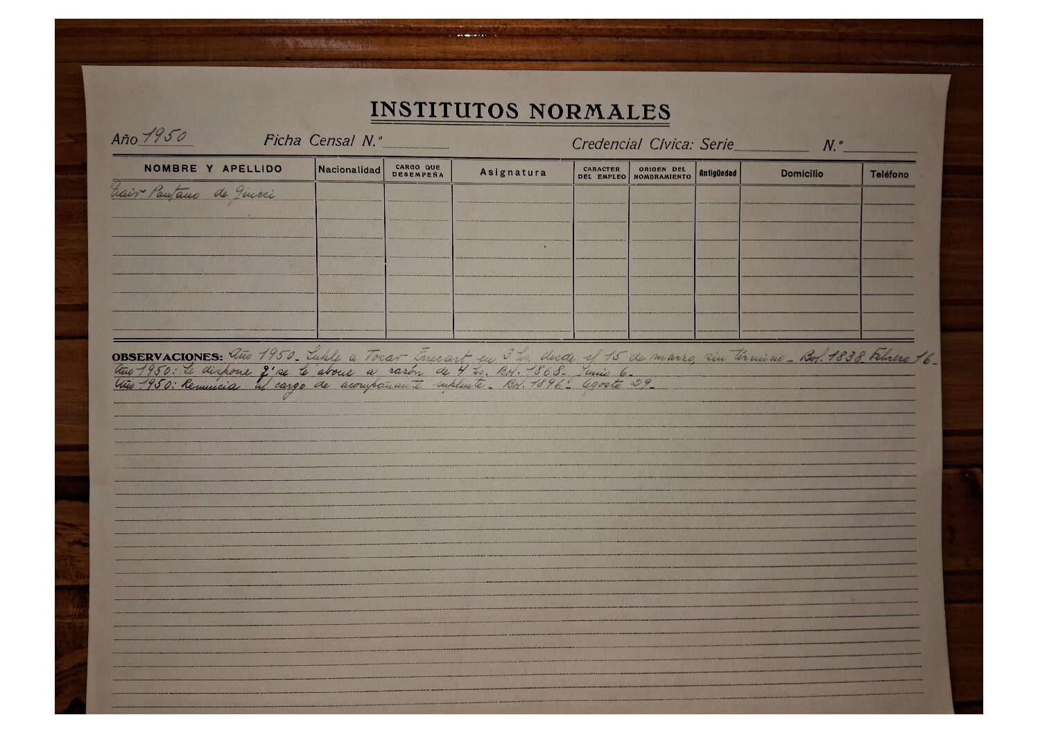 Ver documentoLegajo docente de Nahyr Pantano en los Institutos Normales. Ubicación: Archivo Histórico de los Institutos Normales «María Stagnero de Munar» y Joaquín R. Sánchez».