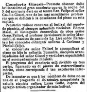 Ver documentoNota en «El Siglo», 3/8/1893, sobre concierto de Camilo Giucci (padre) en Teatro San Felipe. Detalla acompañantes y programa. Ubicación: archive.org