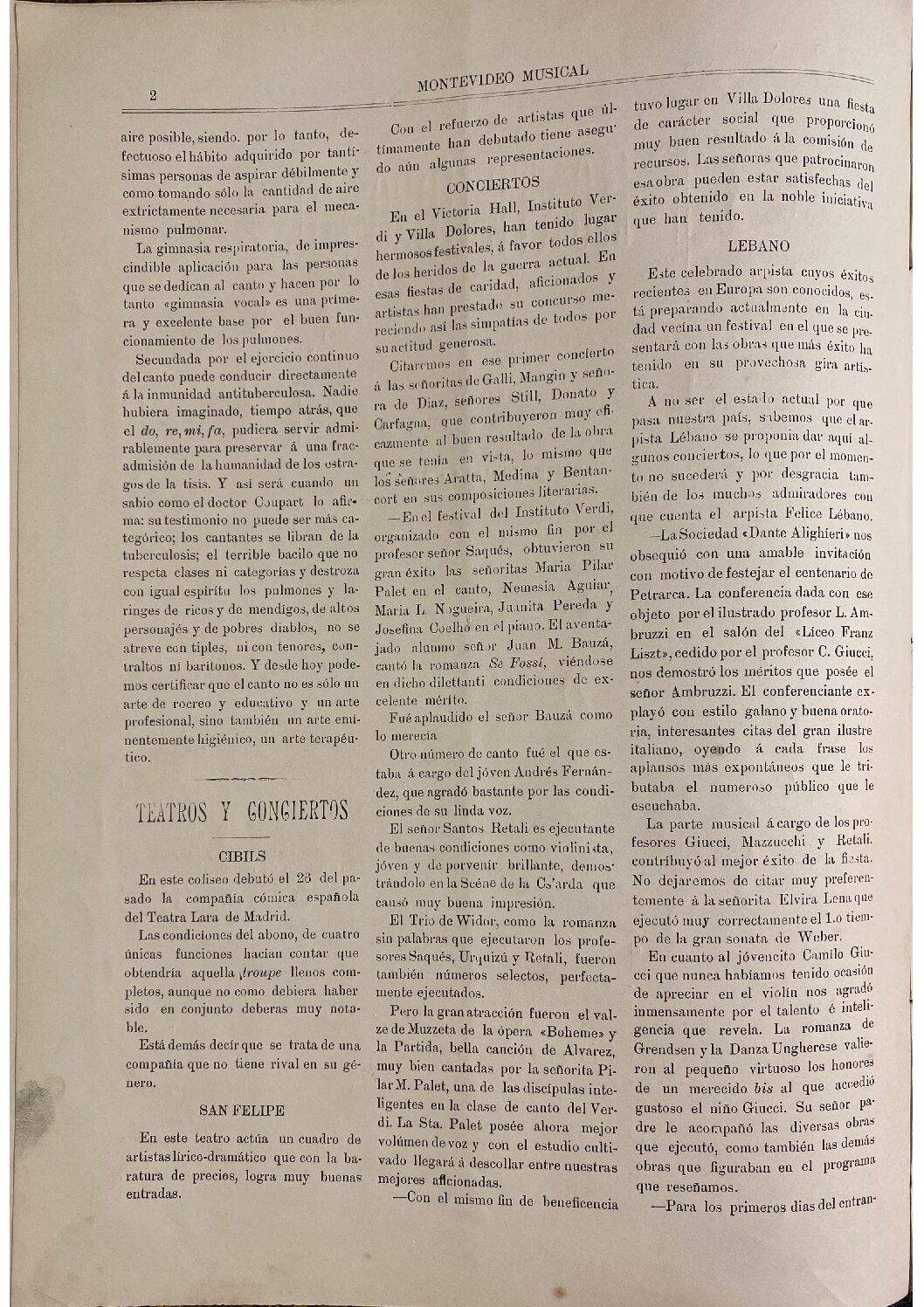 Ver documentoNota en «Montevideo Musical», 1/6/1904, sobre conferencia dedicada a la obra de Francesco Petrarca en el Liceo Musical Franz Liszt. Ubicación: