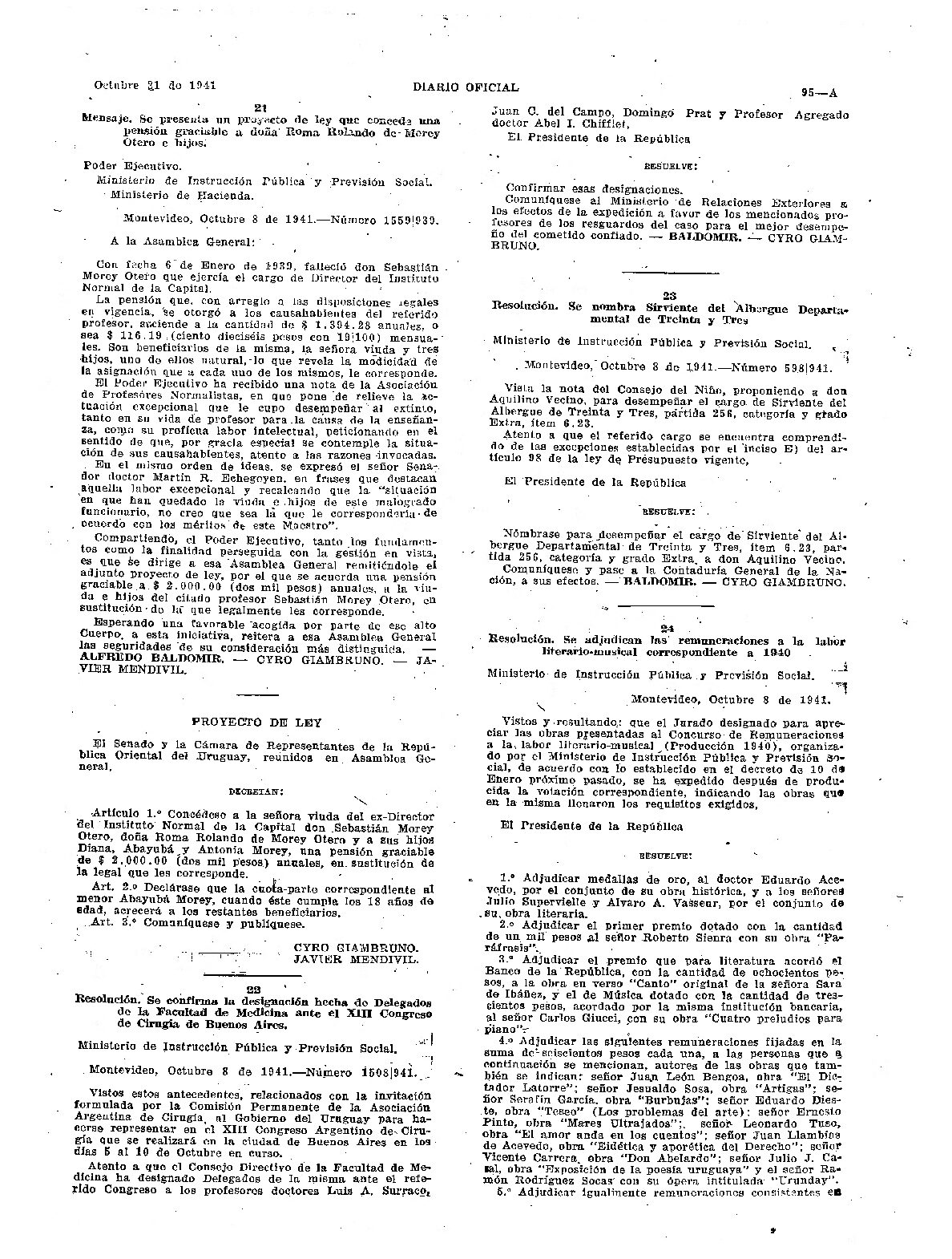 Ver documentoAdjudicación de premios del Ministerio de Instrucción Pública de 1940. Premio de música otorgado a Carlos Giucci por obra Cuatro Preludios para piano. En «Diario Oficial», 21/10/1941. Ubicación: archive.org