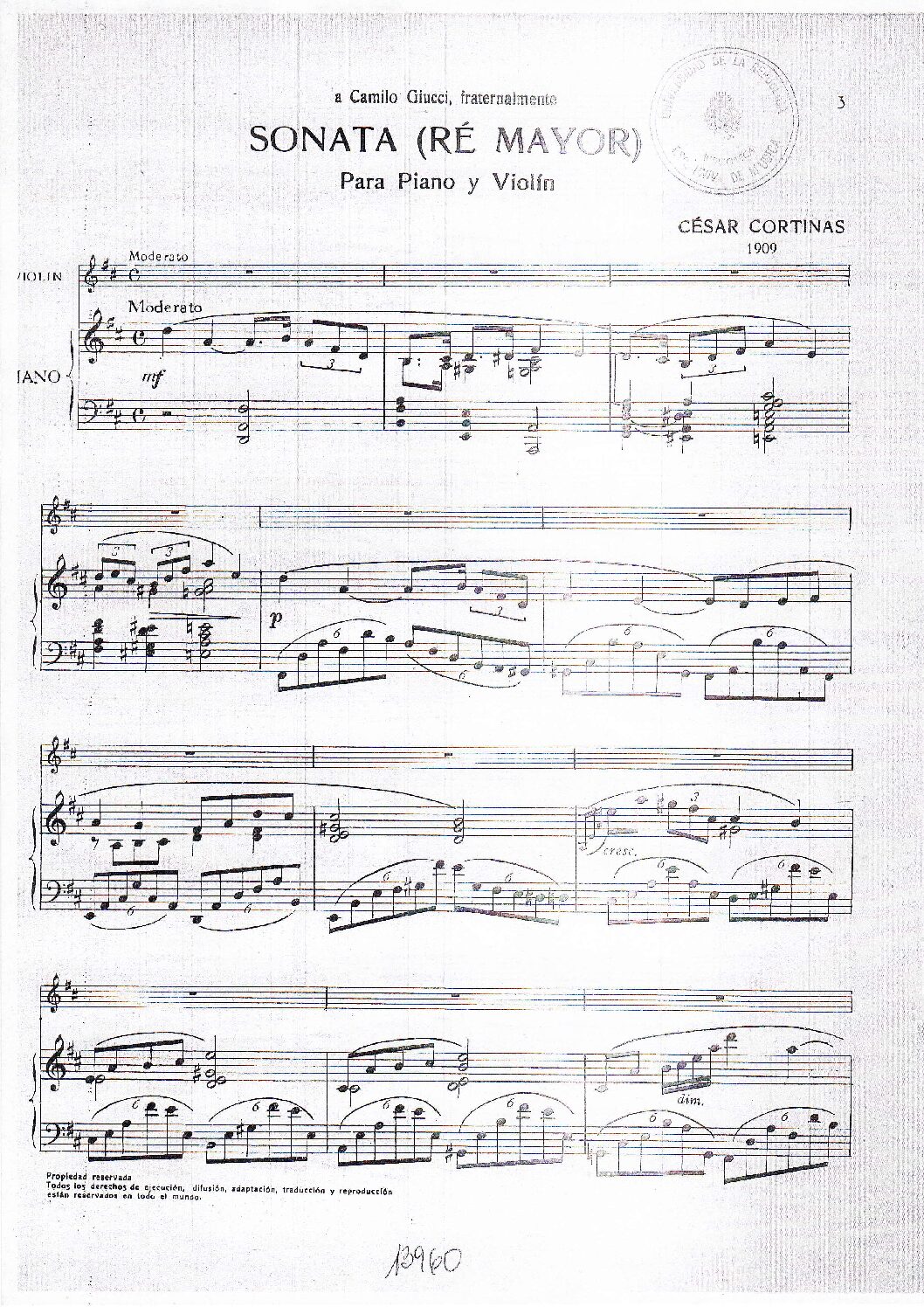 Ver documentoPartituras de «Sonata para piano y violín» de César Cortinas, dedicada a Camilo Giucci (padre), 1909. Ubicación: Escuela Universitaria de Música, Universidad de la República.