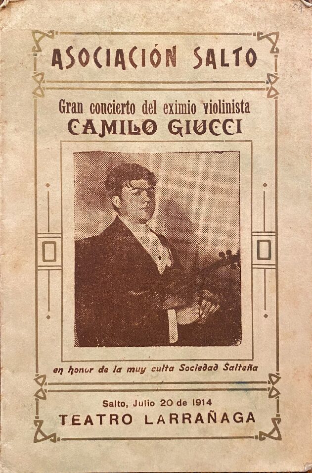 Ver documentoPrograma del concierto de Camilo Giucci (hijo) en Salto, 20/7/1914. Ubicación: Museo Histórico Nacional.